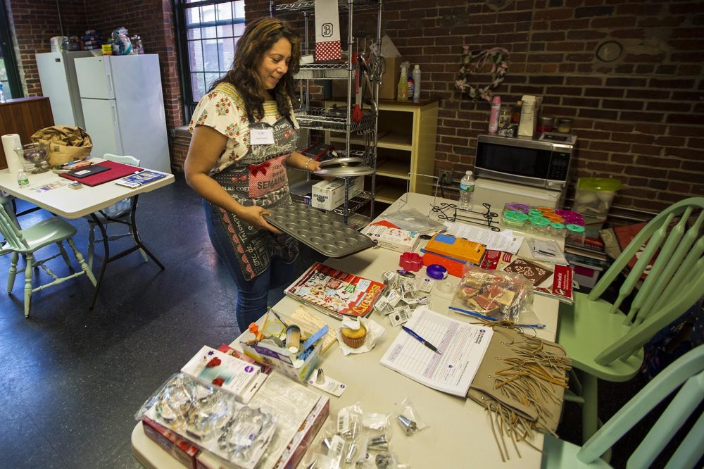 Today, many of the mill buildings in Lawrence are home to refurbished work spaces — buzzing with the sounds of artists, innovators and entrepreneurs like Angie Jimenez, who is arranging pots and pans in the site of her future cooking classroom.