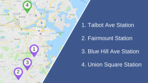 Just a few stops south, the eTOD project known as The Residences at Fairmount Station, is being developed through a partnership between Southwest Boston CDC and Traggorth Companies. CEDAC was an early supporter of this affordable housing development, committing nearly $1.3 million in acquisition and predevelopment financing starting as far back as 2012, and providing technical assistance to facilitate the developer partnership. In July, 2017, the partnership celebrated the construction start of The Residences at Fairmount Station which will create 27 affordable rental homes on five formerly vacant commercial properties adjacent to the MBTA’s Fairmount Avenue transit station.